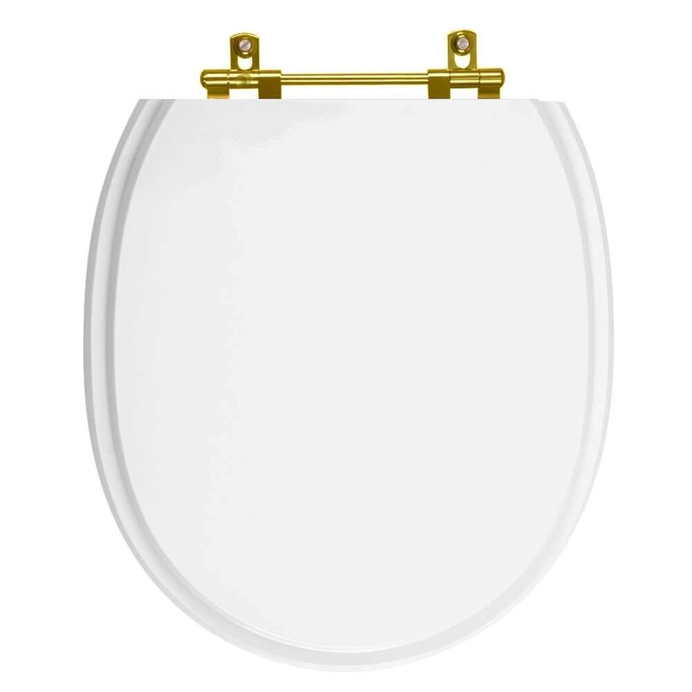 Tampa de Vaso Sanitário Poliéster De Ville Branco Ferragem Dourada