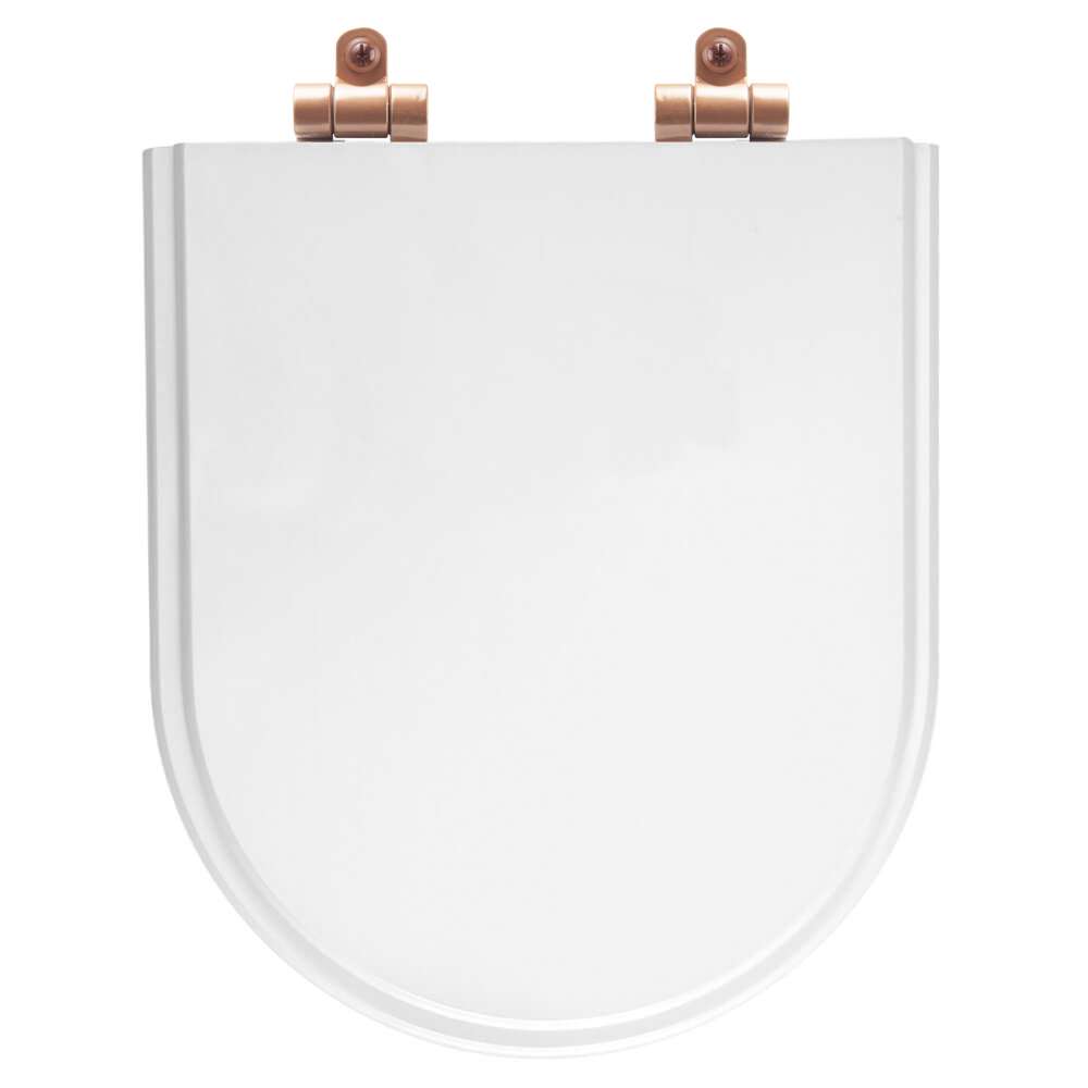 Tampa de Vaso Sanitário Poliéster Soft Close Duna Branco para vaso Deca com Ferragem Rose Gold